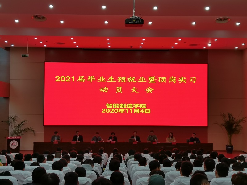 为更好地拓宽毕业生就业渠道,促进毕业生高质量就业,11月4日,智能制造学院在图文信息中心学术报告厅举行2021届毕业生顶岗实习动员暨企业招聘宣讲会。智能制造学院院长姚月琴、党总支副书记贲能军、副院长浦毅、有关企业人事部门负责人、毕业班班主任及2018级全体学生参加大会。会议由党总支副书记、副院长顾琪主持。